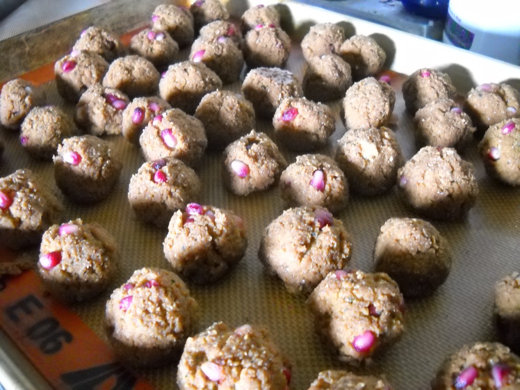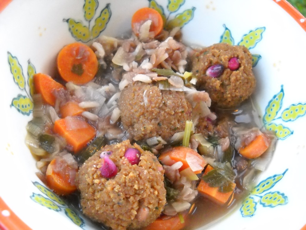 Yesterday, I decided to make the Vegan Turkish Pomegranate Meatball Soup from one of my favorite cookbooks, Veganize This! by Jenn Shagrin. I didn’t intend to make this soup on a rainy day, so the fact that it was cloudy with a chance of meatballs was entirely serendipitous. What I didn’t realize was that making this soup would turn into a 4 hr meal. If you have Jenn’s book and intend to make this soup one day, I suggest you prep for a day or two ahead of time, as this soup is a handful. I don’t mean to say anything negative about Jenn or her recipes, because I adore her and her food, but just warning everyone that this particular recipe is very time consuming if you choose to do it all at once.