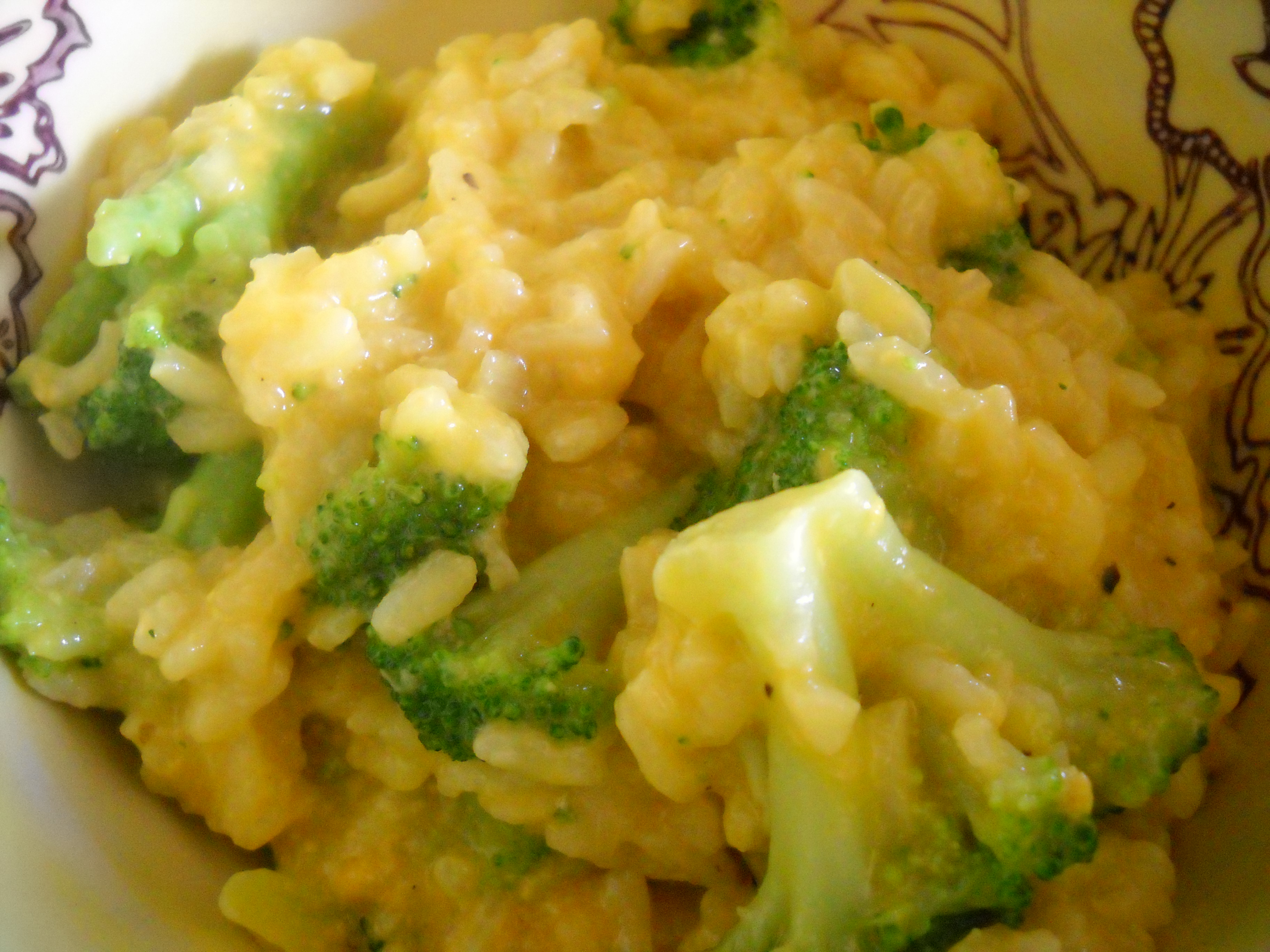 Risotto. You can basically put anything in it and it will be good. To make this, just use the basic risotto recipe that can be conveniently found here and instead of adding radicchio/tempeh pancetta, add a generous helping of Daiya and some freshly steamed broccoli.