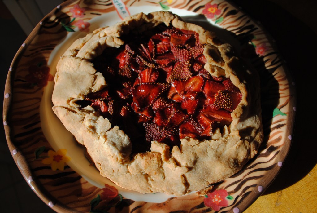 For the first strawberry dessert of the season, I made this Honey-Balsamic Strawberry Galette. I saw the recipe over on Honey & Jam. The recipe is almost vegan, but if you don’t want to use honey, sub brown rice syrup or agave.
