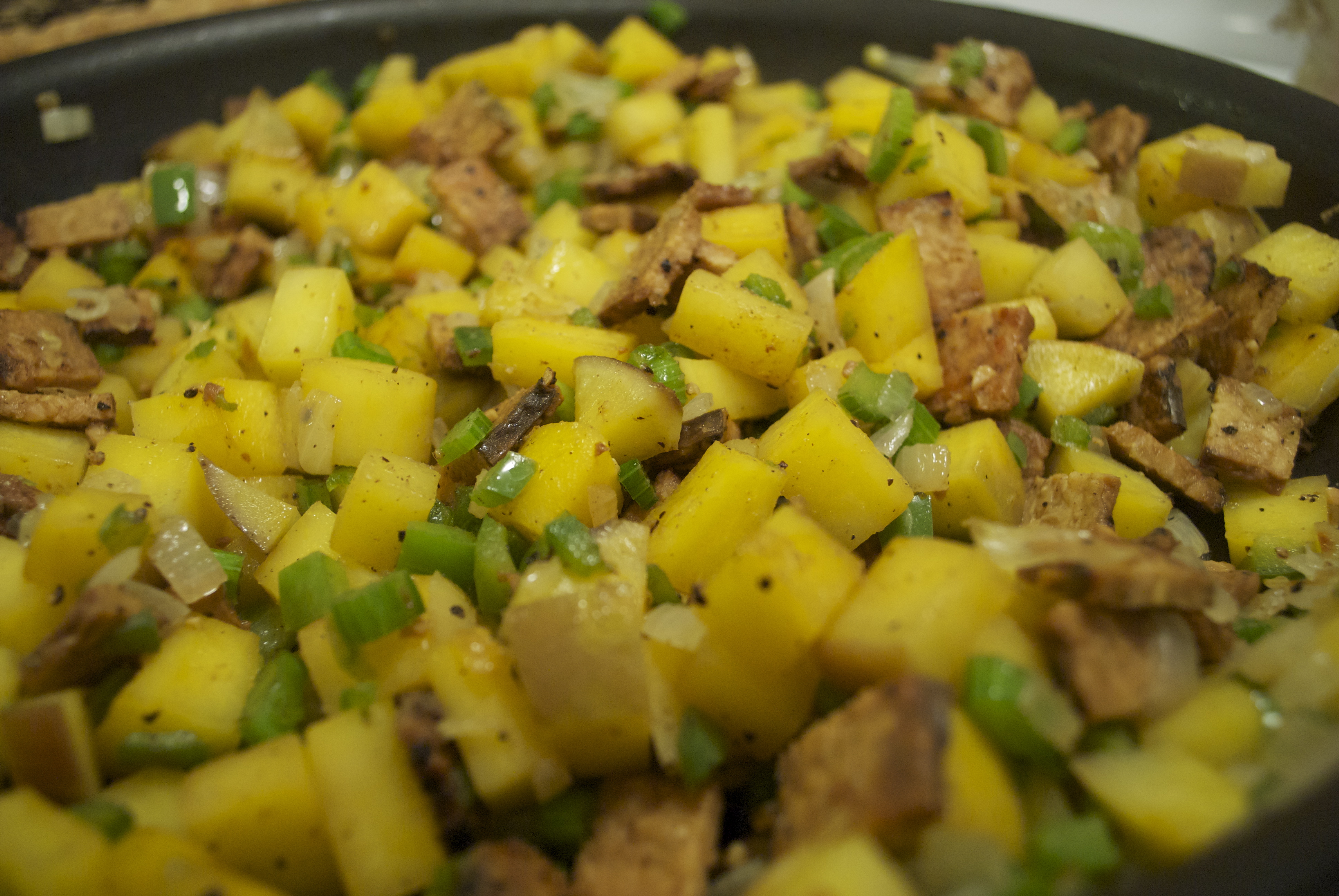 Rutabaga Hash w/ Peppers & Tempeh Bacon.