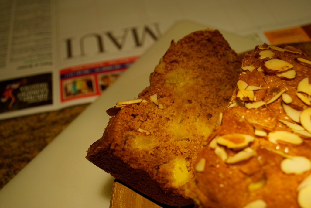 I decided to start with the Honey Mango Orange Bread from Eat the Love. I replaced the 3 eggs with 3 tsp dry Ener-G Egg Replacer (NOT mixed with water) and it came out excellent. Very moist, loaded with Hawaiian mango, humane organic Hawaiian honey, local navel oranges and Maui grown organic vanilla beans (which you can get for a little less than $1 a piece!).