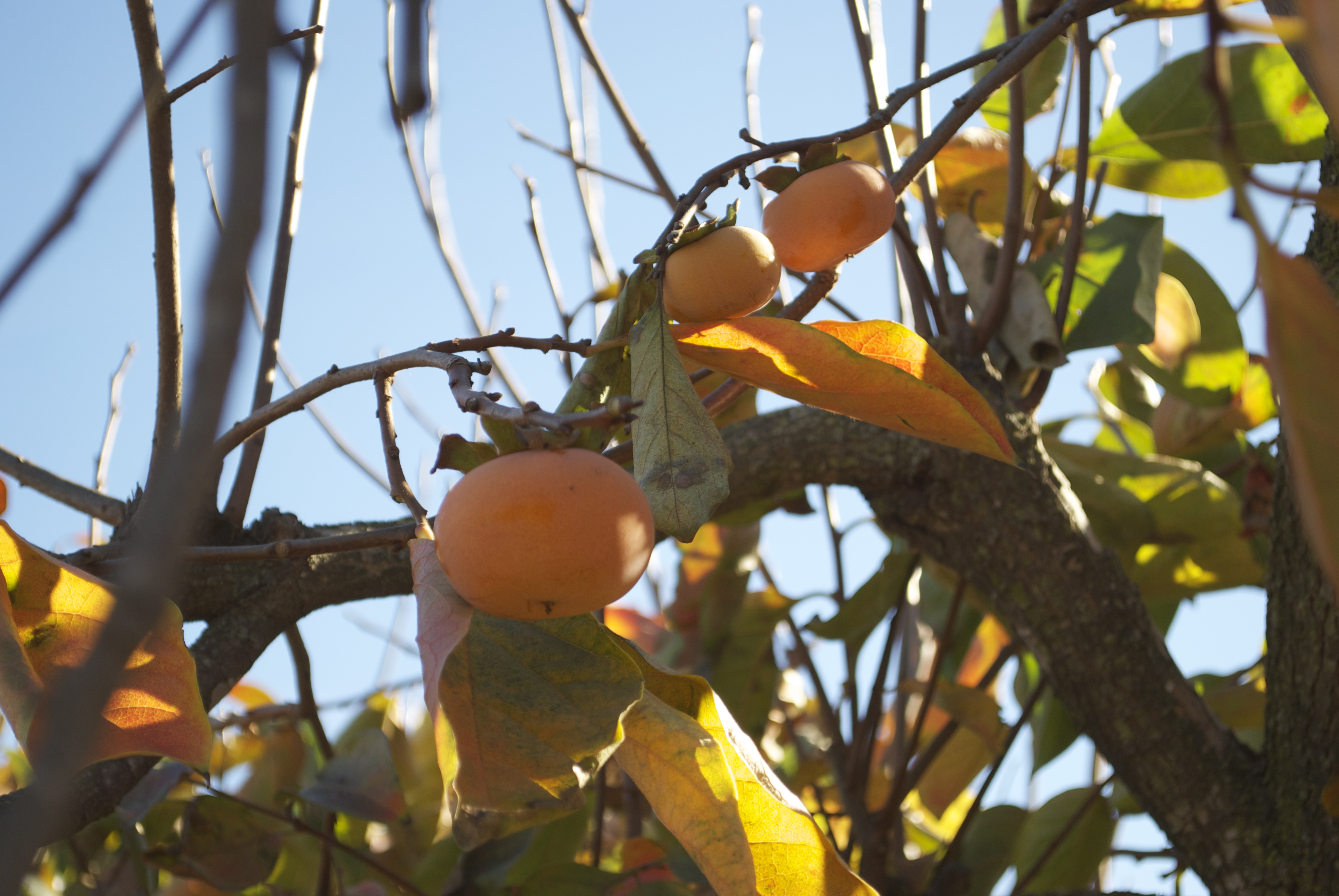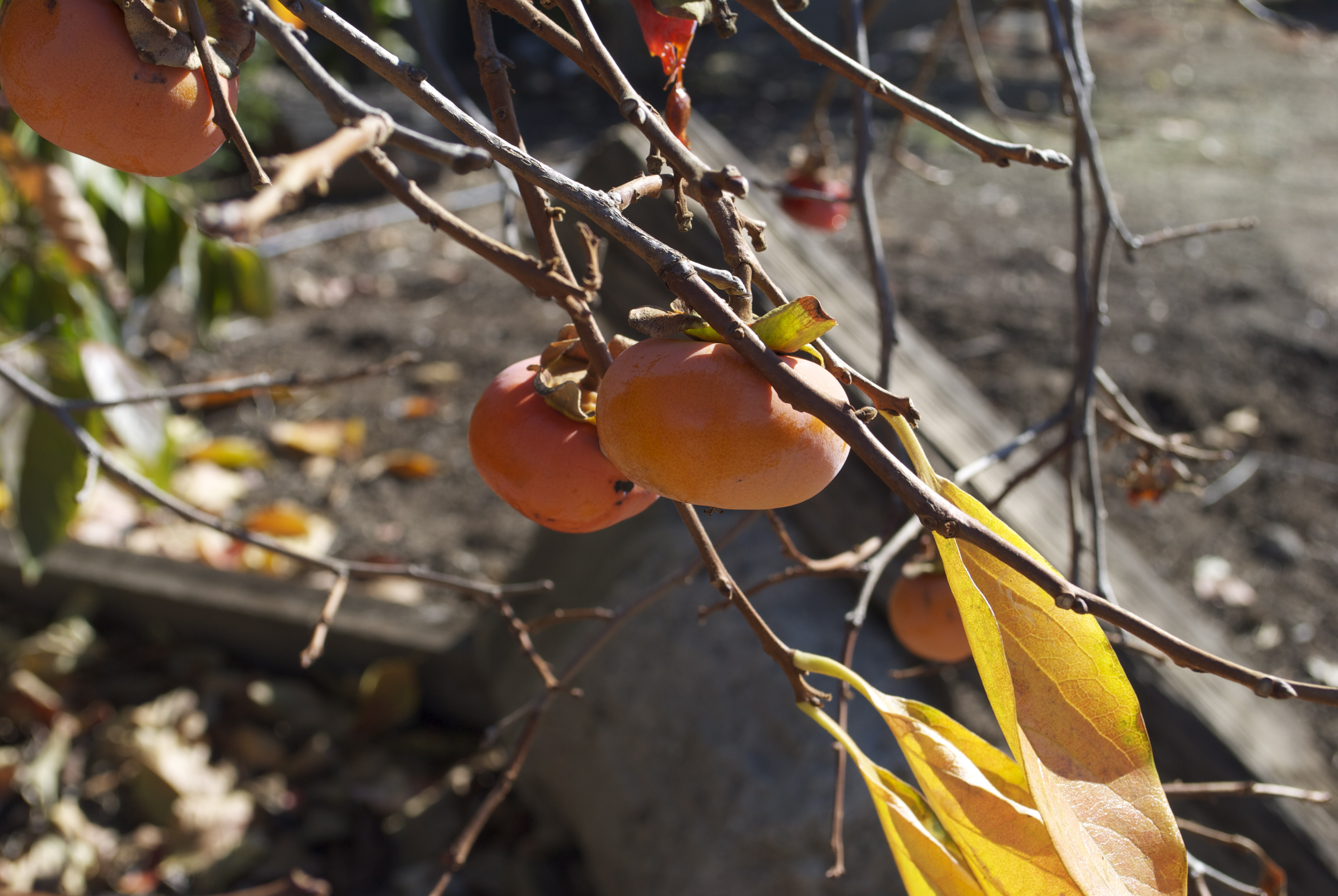 As luck would have it, we happened upon a few tattered signs for persimmons. We followed them and found ourselves at Ellie’s Persimmon Farm. The orchard is planted on a hillside, so it can be a little treacherous. The orchard is mostly Fuyu trees with some Hachiya sprinkled in at the top. The persimmons were perfect, organic and cheap. There is no admission fee and you can eat as many as you like and no one seemed to mind that we brought a pup.