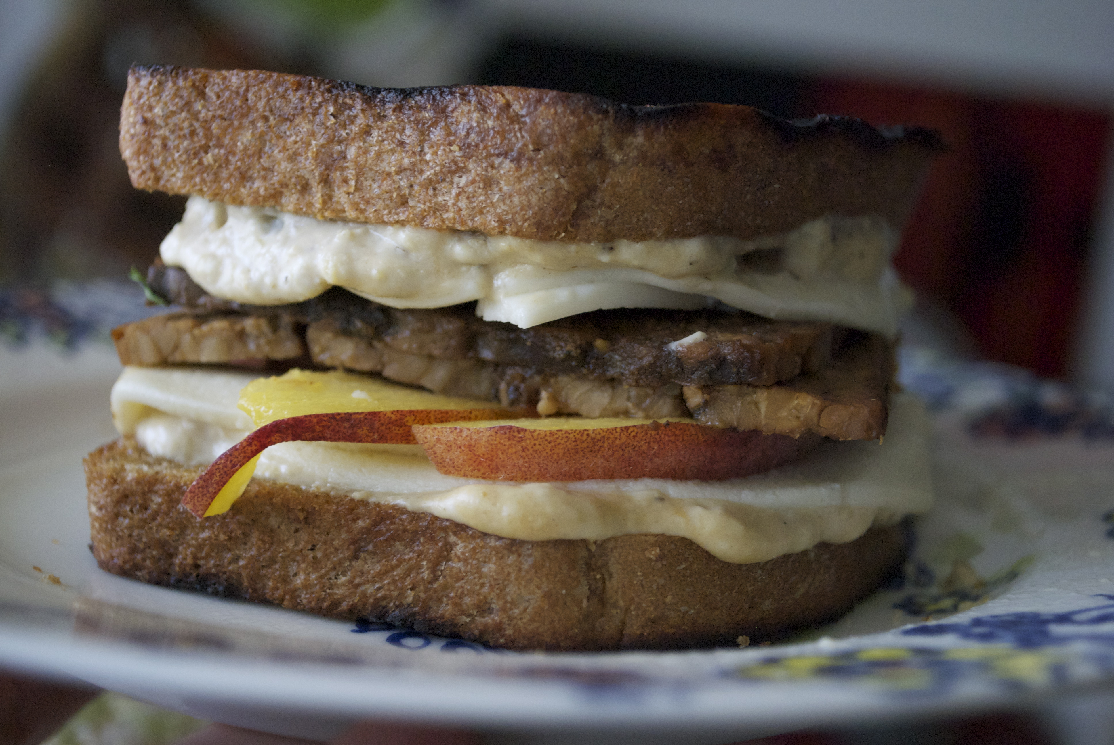 And I still have so much more catching up to do. I’ve got a few more Hawaiian recipes up my sleeve, plus some pie treats and cobbler as mentioned above. Way, way up above. I’m hoping to be posting more these days, so check back in with The Jolly Fox when you have a minute to see what’s cookin’. If you’re reading this, I love you. And now, because I love you, I leave you with this Peach and Bleu Cheese Panini w/ Smokey Tempeh.
