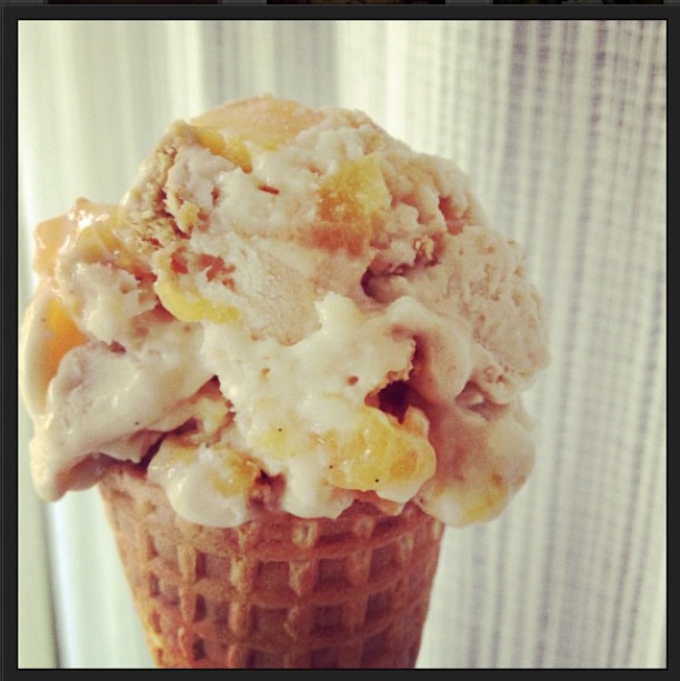 Vegan Graham Cracker Ice Cream with Bourbon Peaches and Coconut Cream
