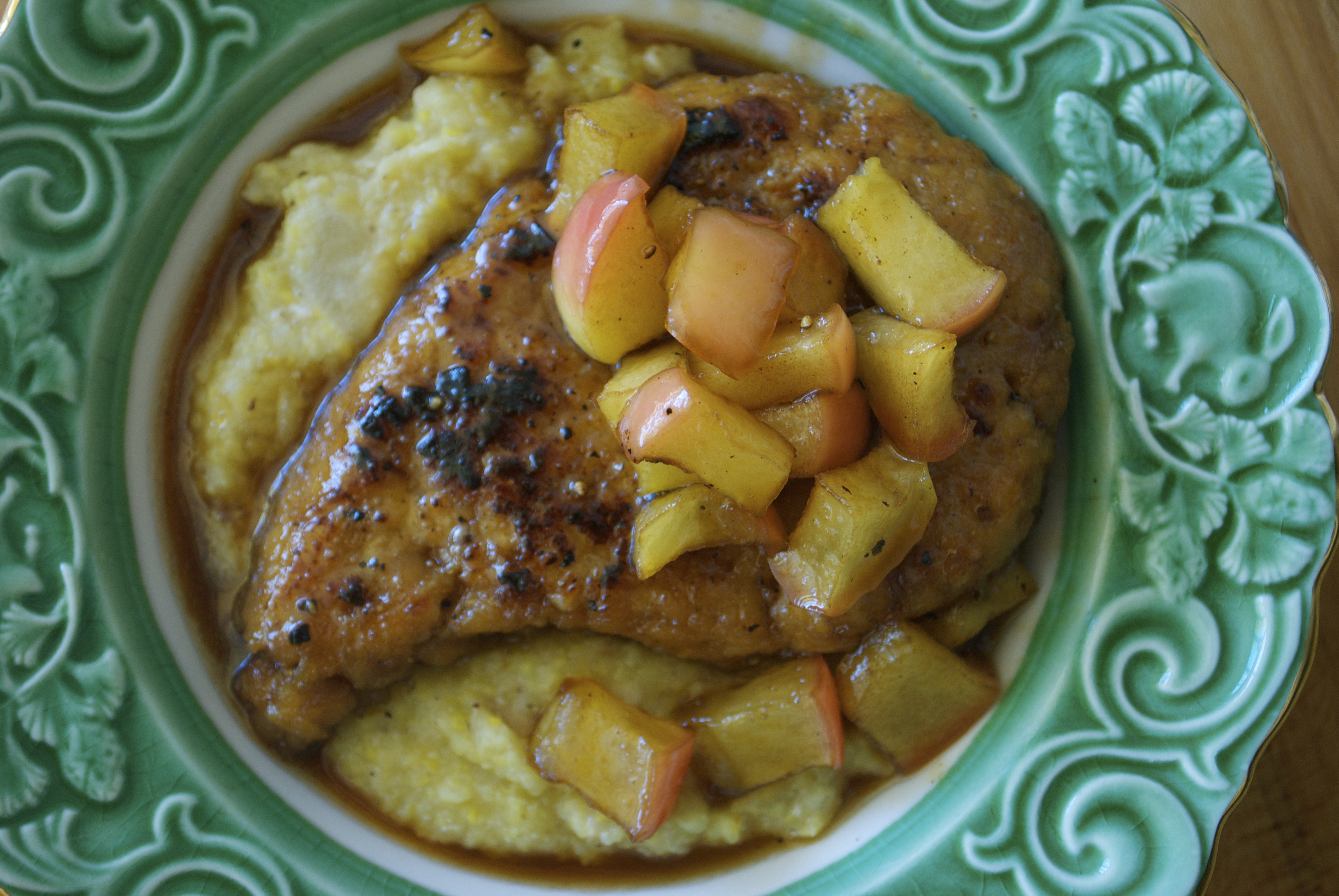 Vegan Pork Chop w/ Apples Sautéed in Maple Reduction