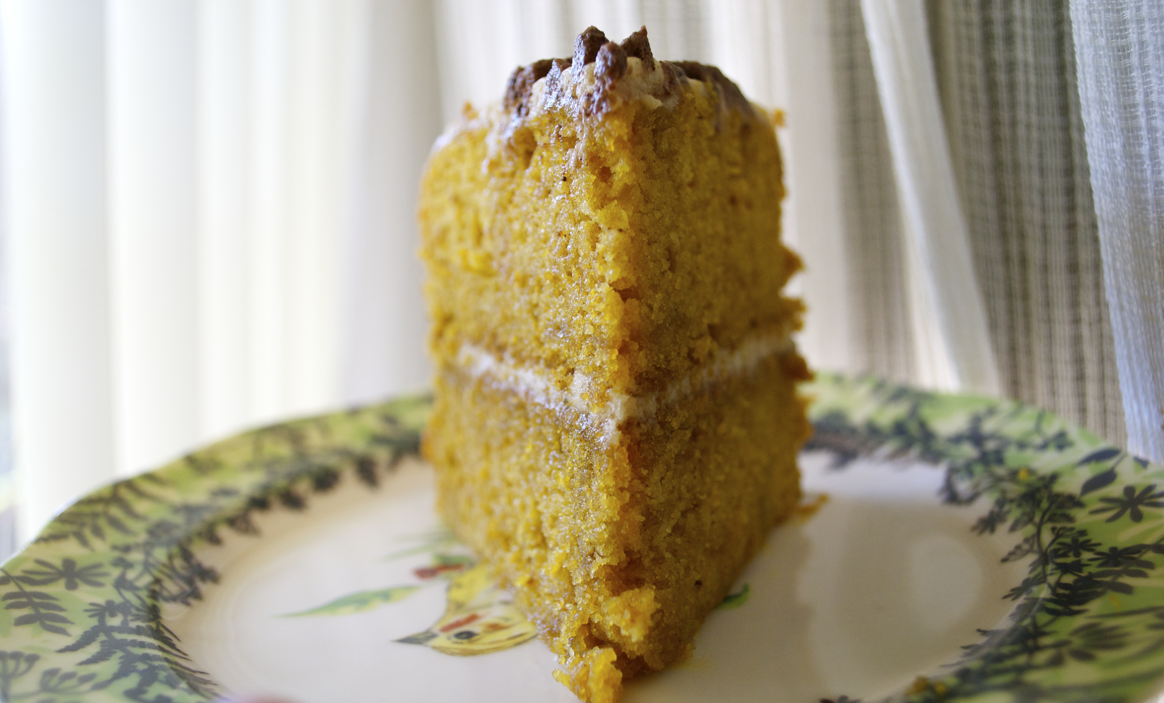 I used this recipe by Oh, Ladycakes for the frosting. I decided on a naked cake, which means I chose not to frost the sides of my cake. I think this frosting recipe makes enough if you wanted to frost the sides, but I do suggest you try it without. The rich, pumpkin cake with the spices and orange is nice with light frosting.