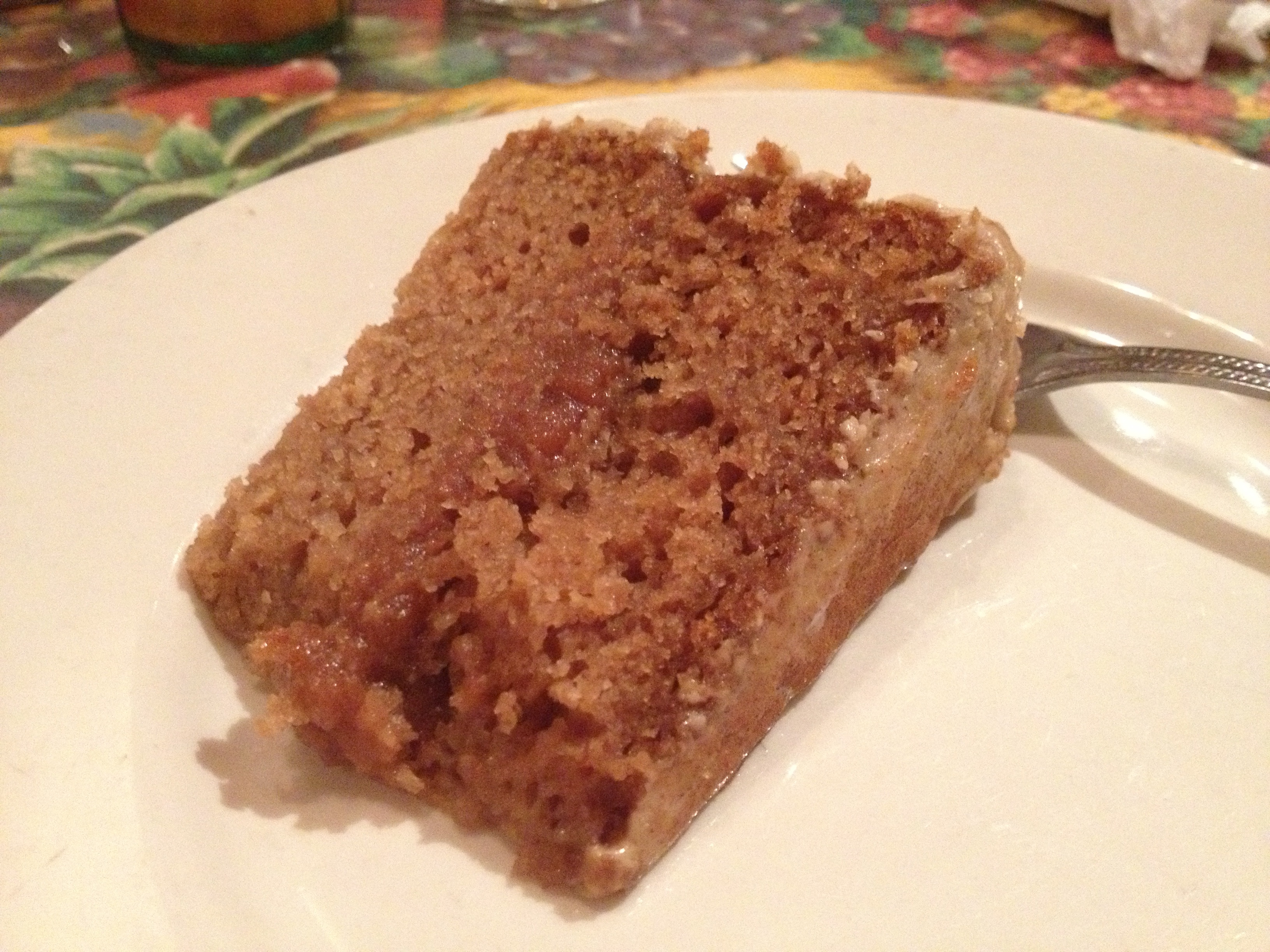 Rather than fill the cake with frosting, I decided to use homemade apple butter for the center filling. Sometimes I like to switch it up in regard to the filling rather than using frosting. Frosting is so sweet, so sugary, so fatty that personally, I thought it would be refreshing to have something sweet, but healthy in the middle. The family seemed to like it. We had so many people at the table that I served the entire cake–which was splendid so I didn’t end up on the couch eating leftover cake by myself later that night. 🙂