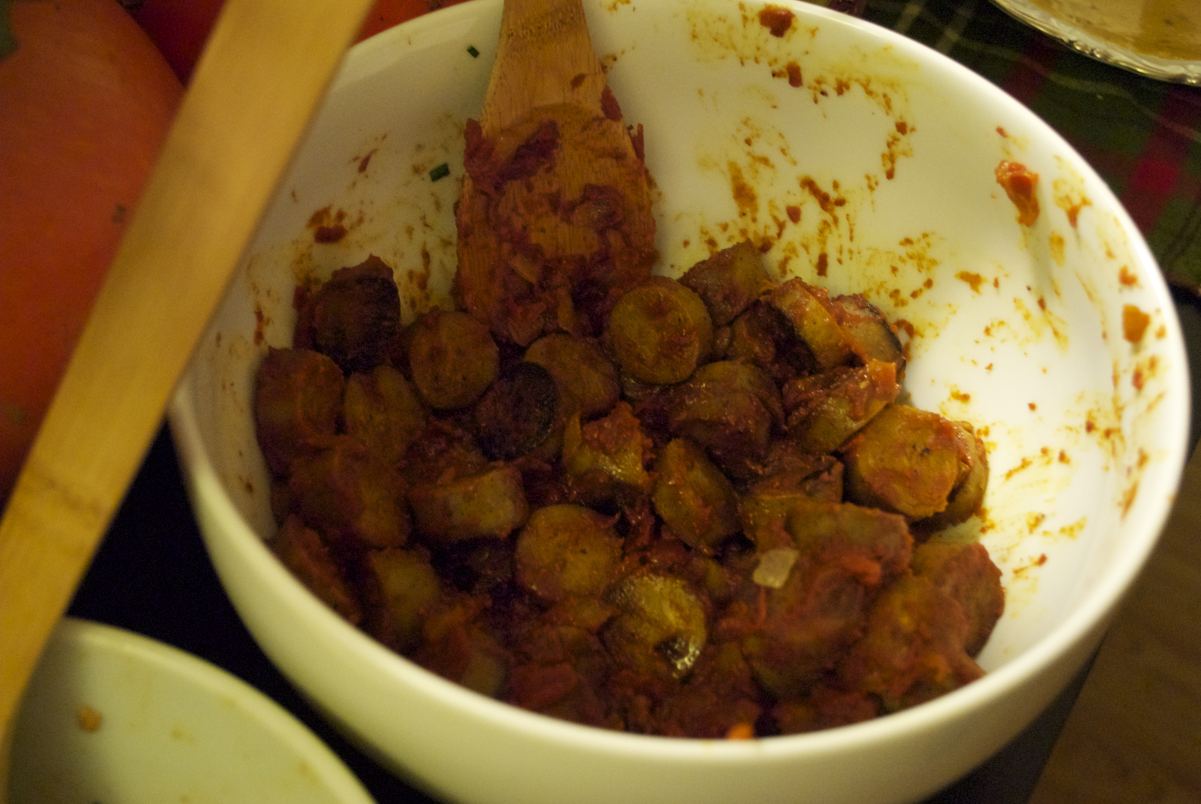 Vegan Currywurst: Veggie Beer Brats in Homemade Currywurst Sauce (aka curry-tomato sauce)