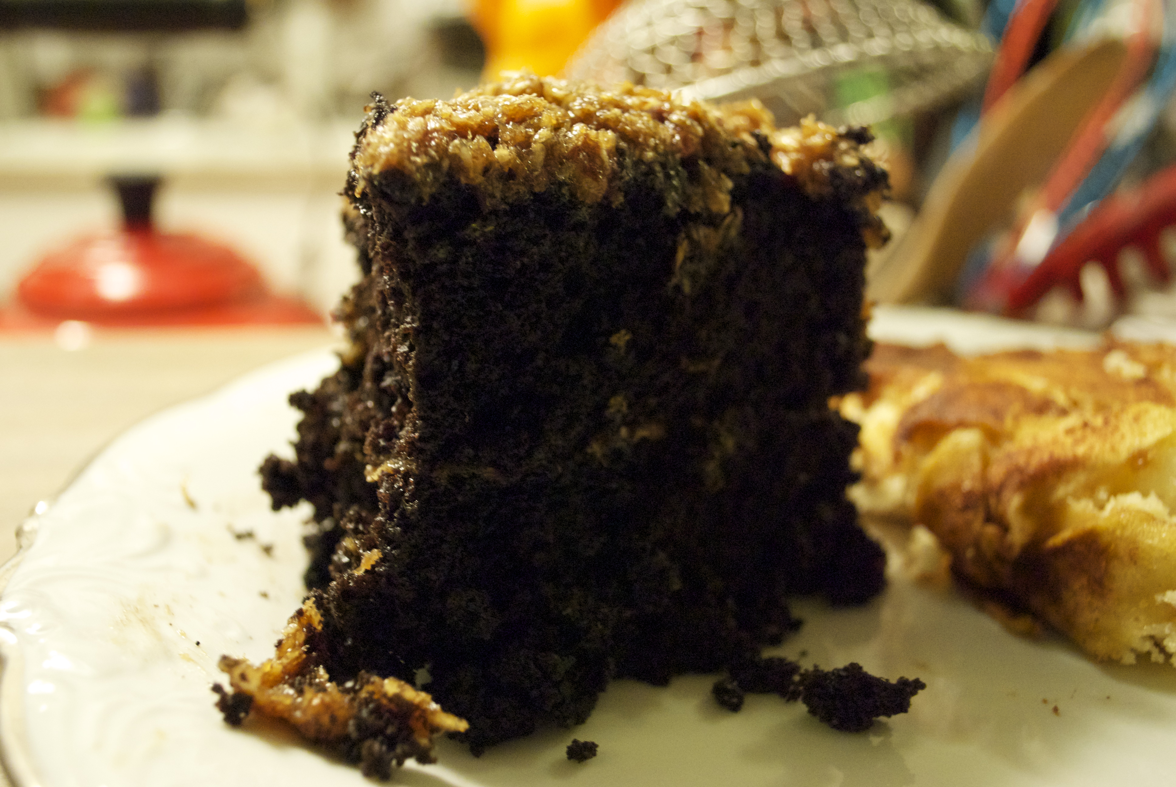 Dessert x2. German Chocolate Cake and German Apple Cake….which look a little silly when next to one another…