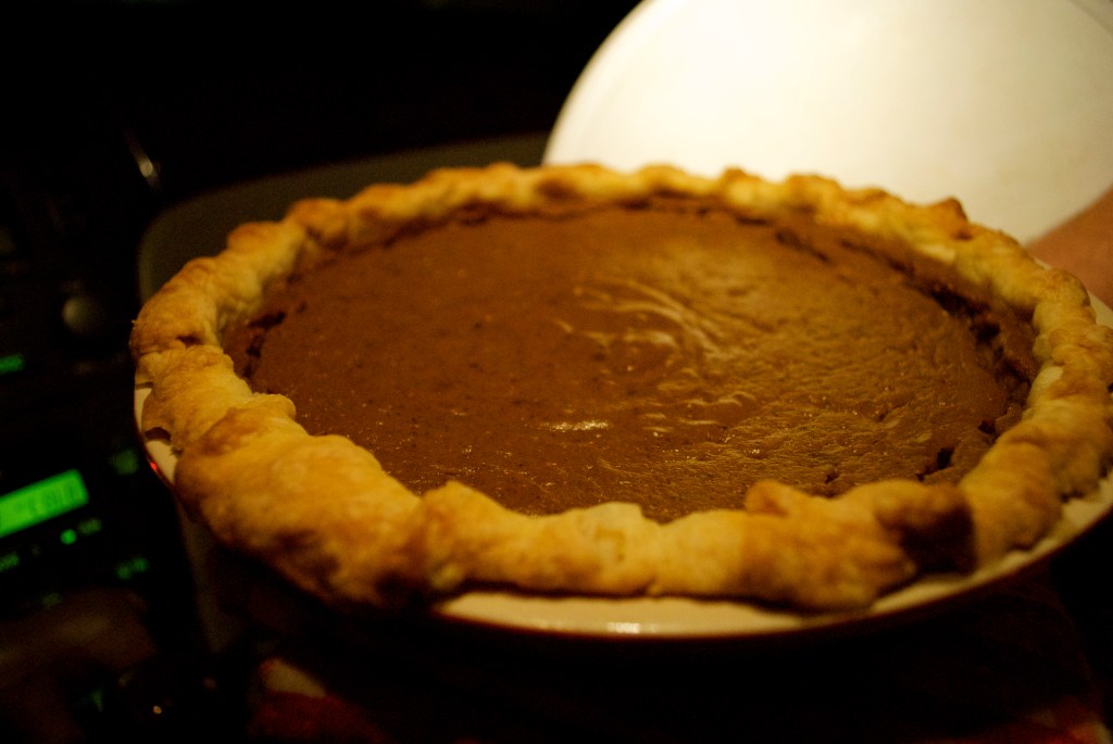 I decided to do a take on this recipe by Alton Brown. I love Alton and I’m sure he would not approve of making his pie vegan (OMG there’s tofu in it) but all the same, the pie was made and it was a success.