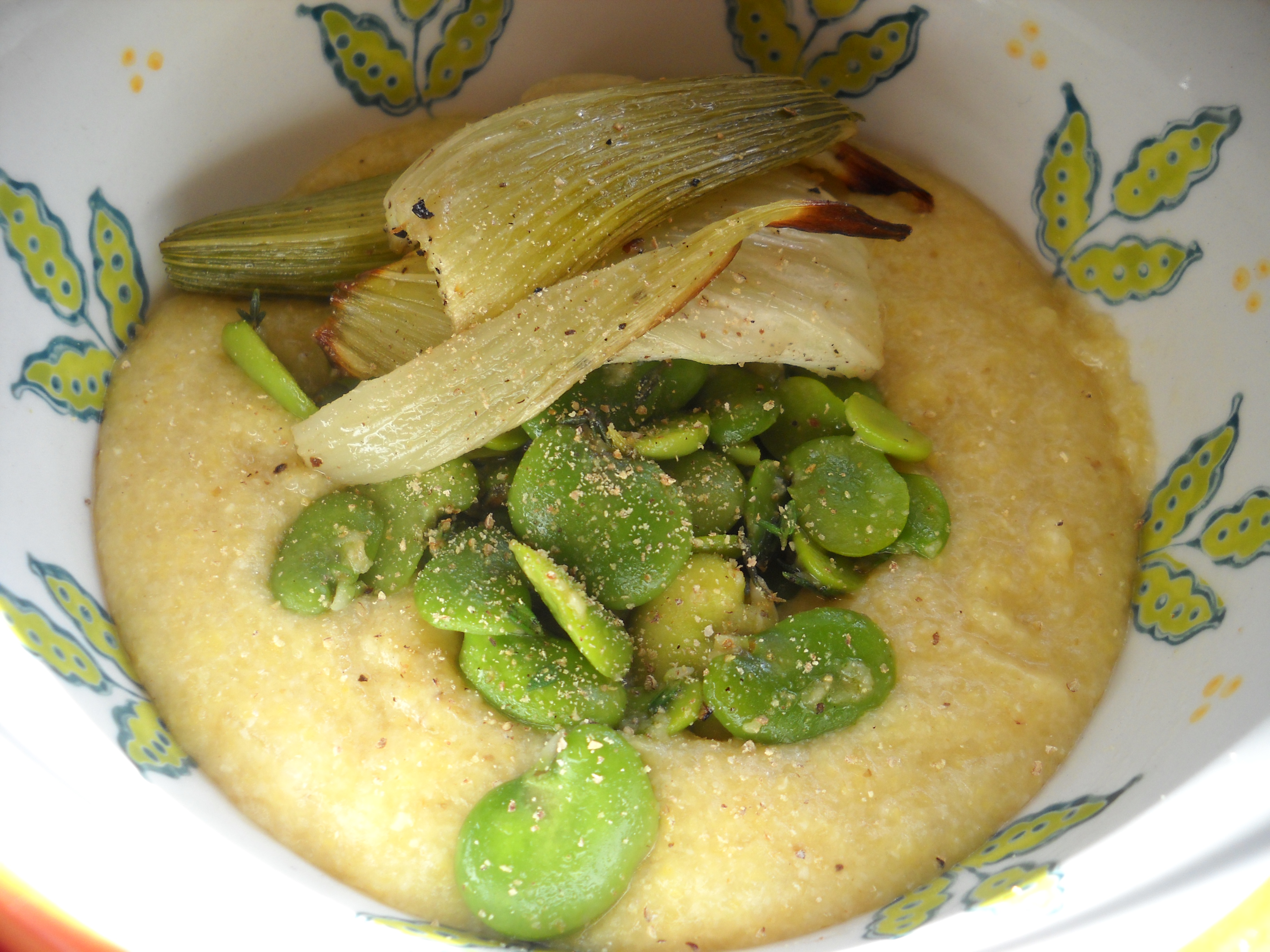 Savory Grits with Sauteed Broad Beans, Roasted Fennel & Thyme