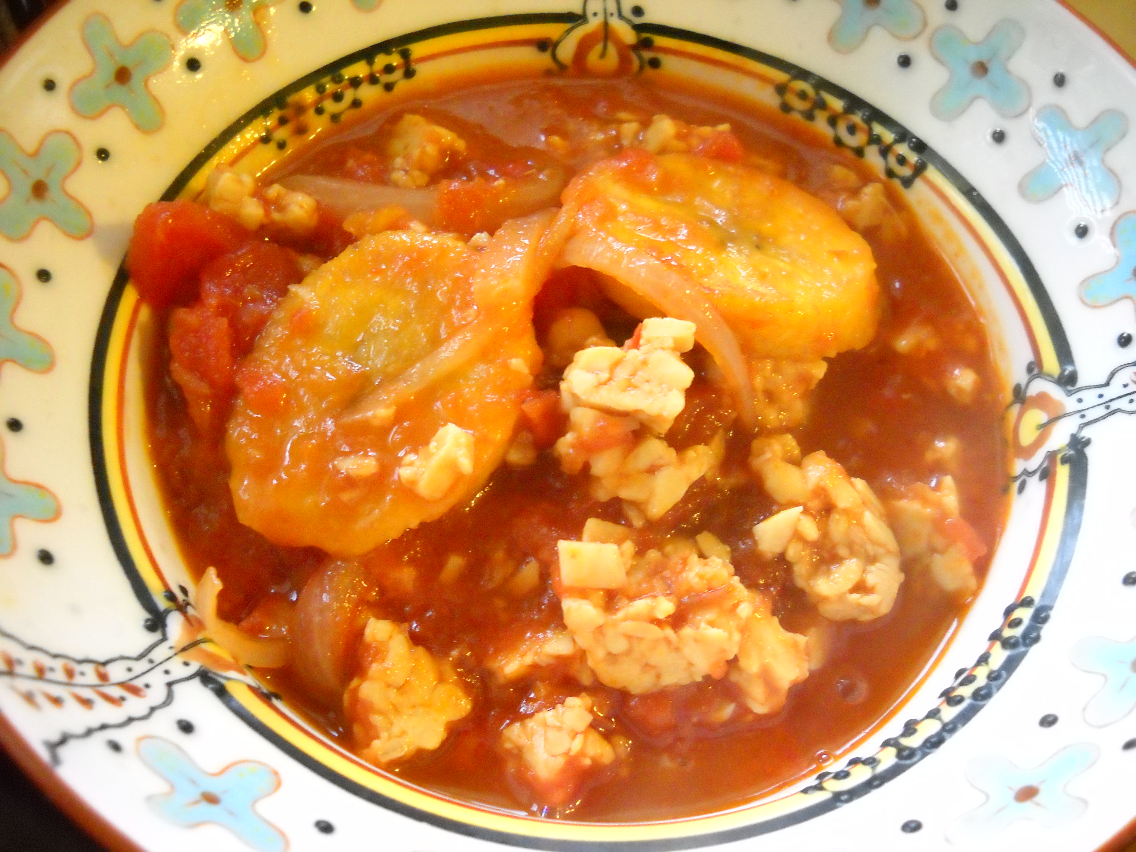 Smoky Tomatoes, Roasted Plantains and Crumbled Tempeh