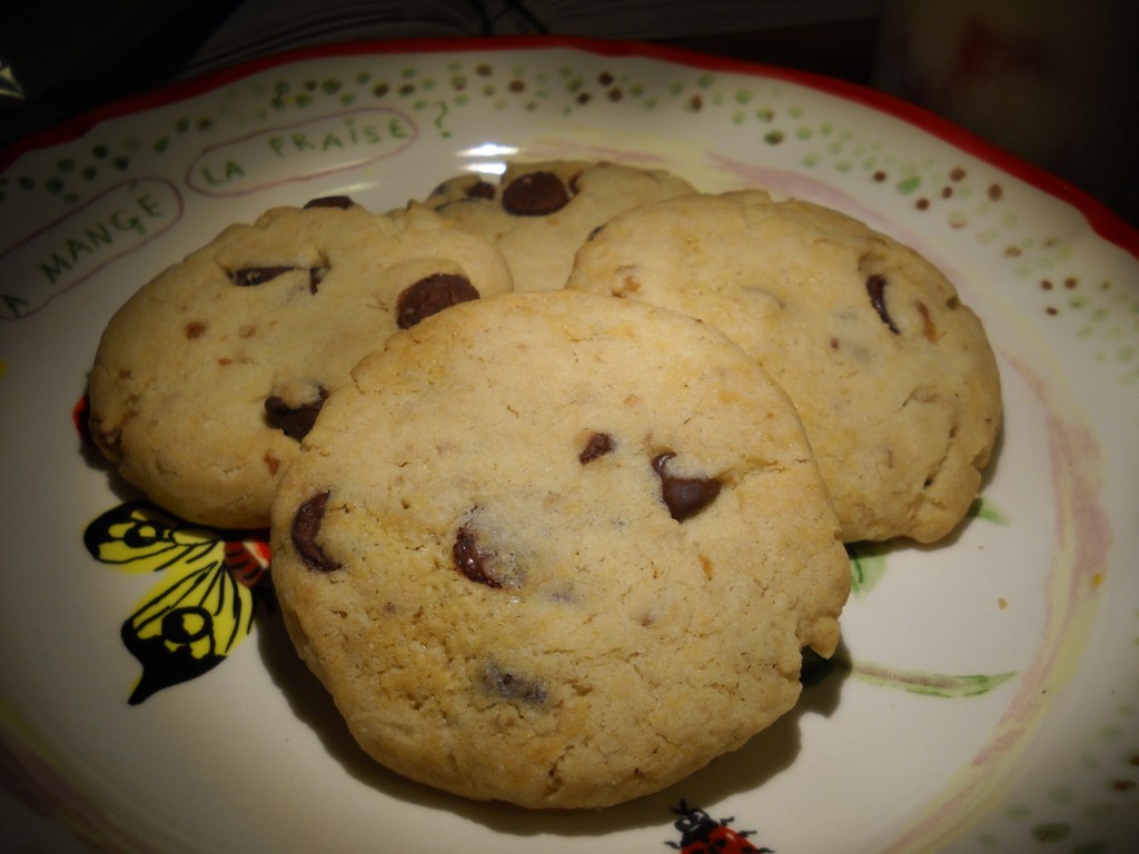 Oh man. Who knows why I had the desire to put fake bacon into cookies….But, it worked. I think I put just a touch too many bits in. They didn’t ruin the cookie or put it into the “savory” category, but they were just a touch too close to savory. Either that or they needed more chocolate. Great basic chocolate chip cookie recipe though, with a bit of sugar removed and a touch of maple syrup added. Will definitely perfect the measurements on these and share them. I gather these will be a hit with some and gross to others, so when the recipe is up, you’ll have to try them at your own risk. And beware, I’m also working on a potato chip cookie inspired by Smitten Kitchen.