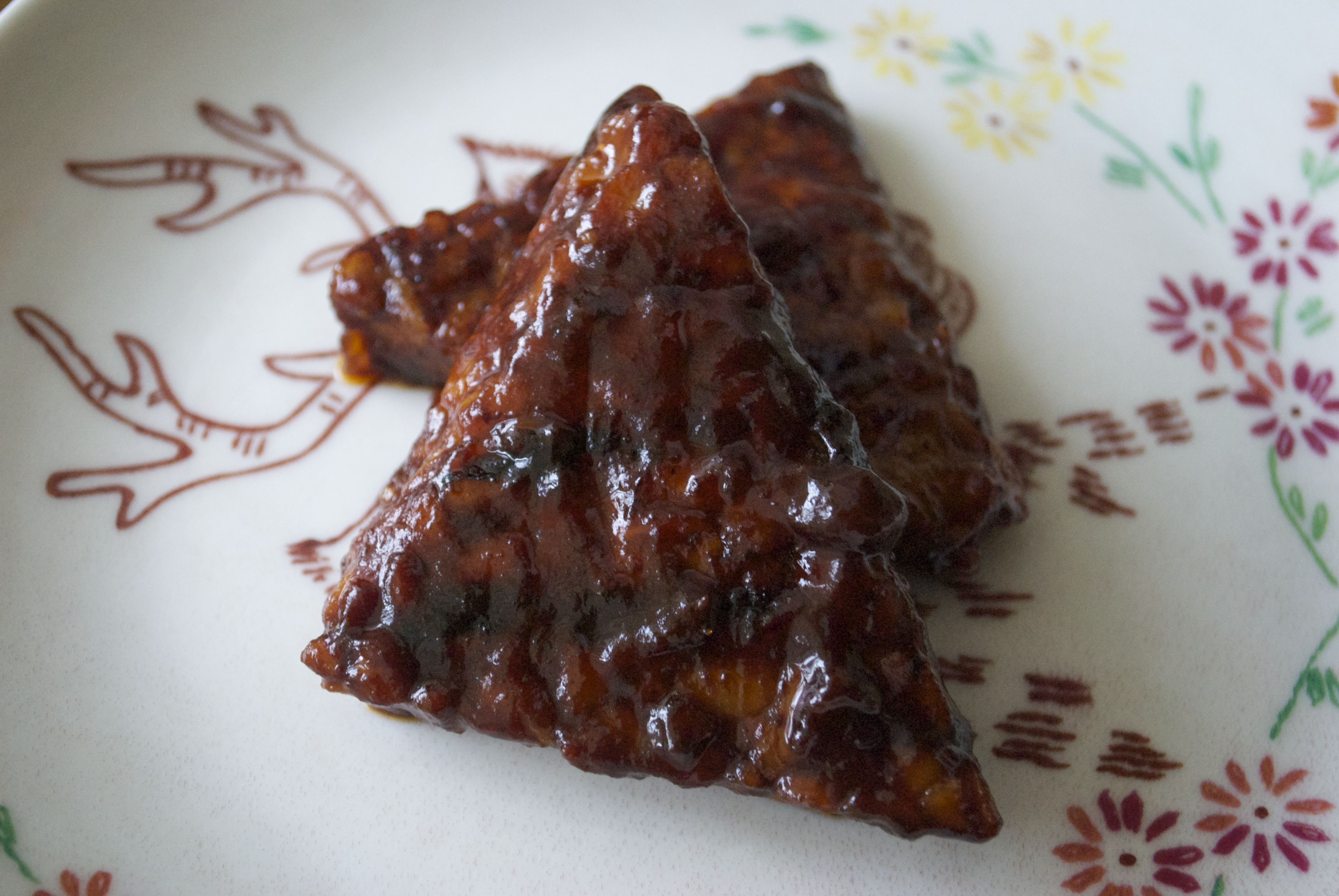 Anxiously awaiting cherry season. Last year I made a quick cherry jam to make this sauce. Then I cut some tempeh, steamed it for 7 minutes, marinated it in the sauce, then threw it on the grill and brushed it with the sauce until finished. Put it on a gluten free brioche bun and made up a quick slaw. Sandwich perfection.