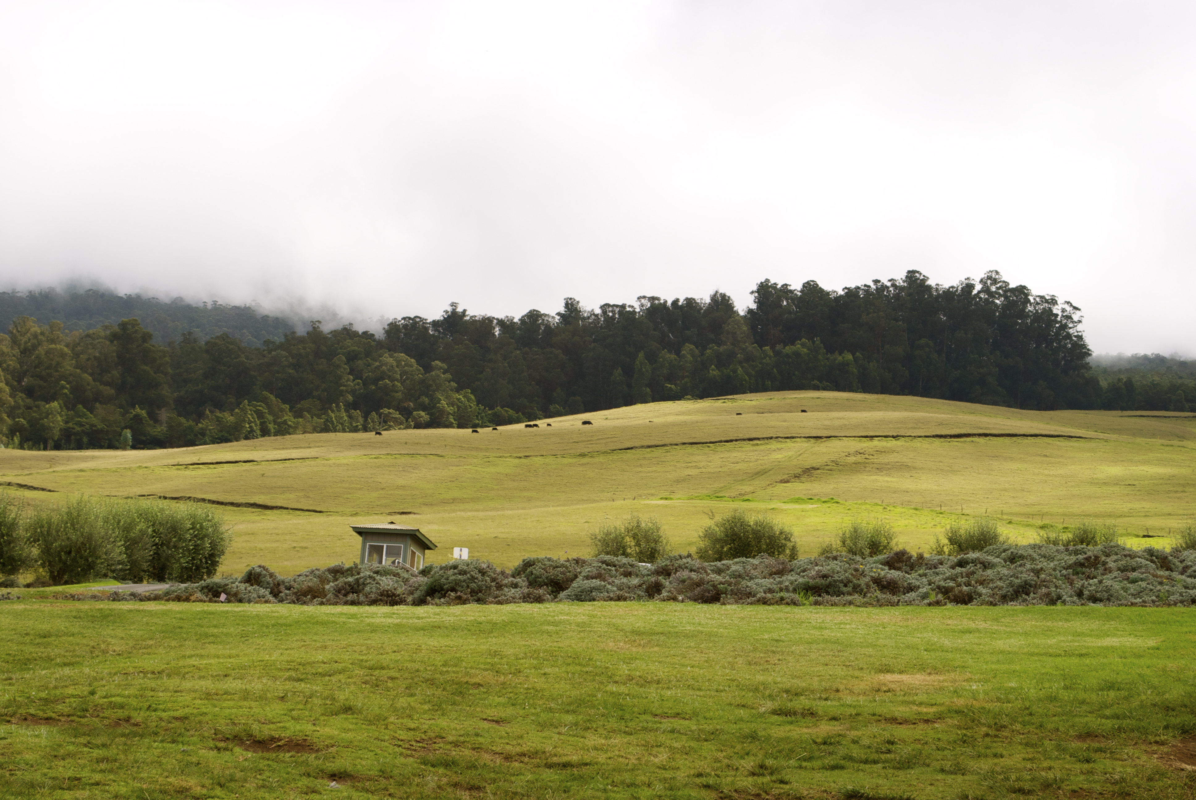 My favorite place on all of Maui is Kula. Kula is nestled up on the western slope of Haleakala. One of my favorite sights is looking up at Kula from further down the volcano; there is this breathtaking light and dark contrast up on the hillside, created by a mix of the sun, clear blue sky and the clouds that hover above and around the peak of the volcano. You see this bright, beautiful patches of bright green meadows intertwined with dark patches of forest, all illuminated against the grey and blue sky created by the clouds. It’s difficult to describe, but just…lovely.